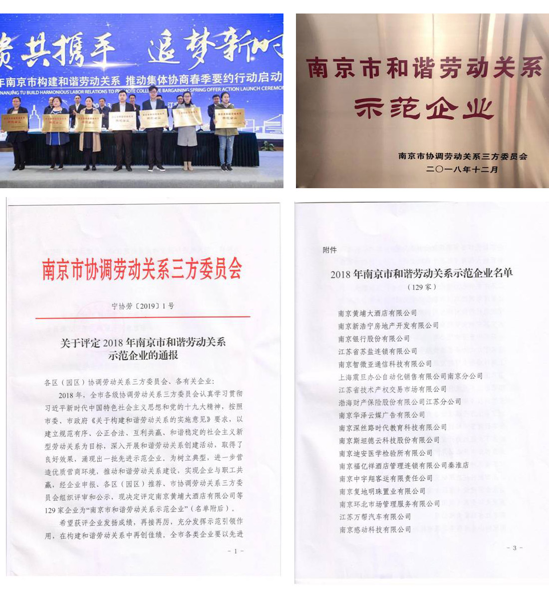 會議為“南京市和諧勞動關(guān)系示范企業(yè)”進行現(xiàn)場命名授牌,南京寧眾人力資源咨詢服務(wù)有限公司代表上臺接受市人社局領(lǐng)導(dǎo)的授牌。